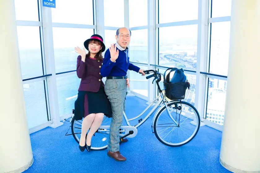 期間中は、SNSで「#桐谷さんと福岡タワーでデートなう」とハッシュタグを付けて展望室の写真を投稿すると、桐谷さんから特別なホワイトデーのお返しプレゼントがもらえるキャンペーンを実施します。福岡市内在住の方に限り、サイン入りの本人と同仕様のママチャリも当たるチャンスがあります。
