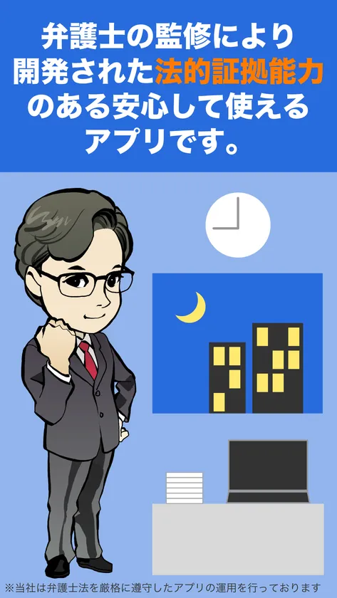 「残業証明アプリ」は2014年4月より開発を開始し、2015年6月18日に「日本初※」の残業証拠自動記録アプリ(※請求代行ワンストップサービス型アプリとして)iOS用の1.0版がリリースされました。現在15,000以上のダウンロード数と実際の未払い残業代の確保という実績も出ている定番の残業アプリとなりました。今回リリース開始となったAndroid版とともに更なる普及を目指します。