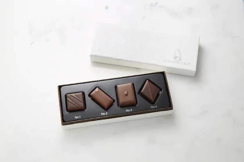 「No.1 ペルーへのオマージュ」「No.2 和のモヒート」「No.3 プラリネカフェとキャラメル・サレ・ア・ラ・ヴァニーユ」「No.4 ダマスクローズ」の4種類のボンボンショコラ。審査員から「繊細で計算されつくされたそのボンボンショコラは、力強く、その味覚の喜びを限りなく続けさせてくれる」と絶賛された一品 。