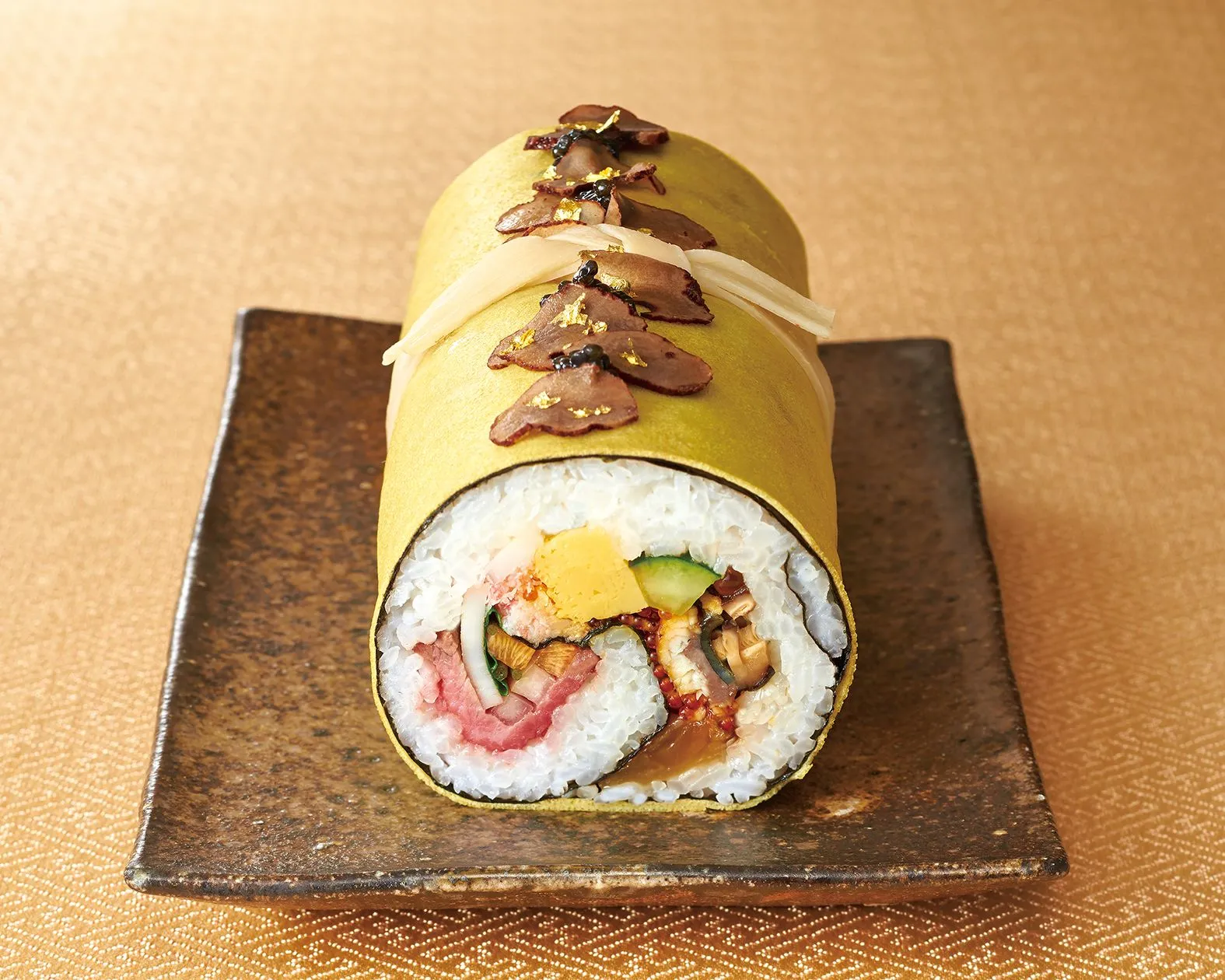 炙り松坂牛、ずわいがに、いくら、キャビア、トリュフ、鰻など15種の具材が織りなす華麗な断面!