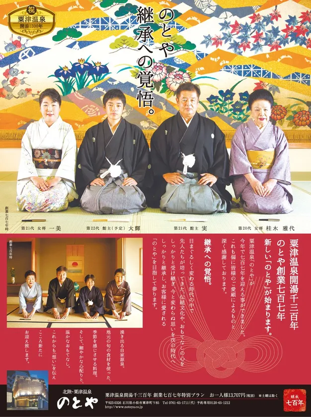 株式会社のとや(本社:石川県小松市、代表取締役:桂木 実)は、2018年で創業707年を迎えます。