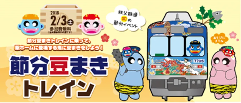 秩父鉄道に鬼が出現!?特別臨時列車「節分豆まきトレイン」運行 お土産・福豆・特別記念乗車証のプレゼントや、 秩父鉄道グッズが当たる福引大会も実施