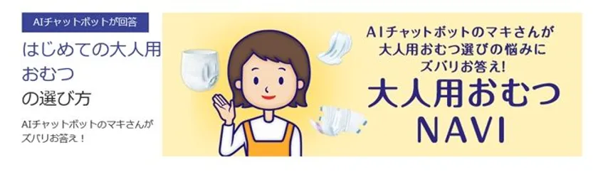 大人用紙おむつ業界初! 人工知能を活用して最適なおむつ選びをアドバイス 「大人用おむつNAVI」で24時間サポートを開始
