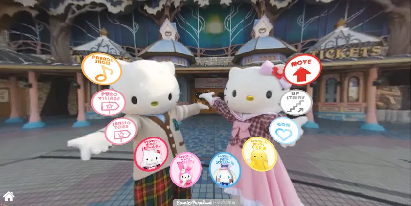 「ピューロランドVR」では、入口でハローキティをはじめとするサンリオキャラクターたちに出迎えられたあとパーク内へ進み、パレードやショーを最前列で観覧することができたり、グリーティングスポットでキャラクターと身近に触れ合っているかのような体験をインターネット上で楽しむことができます。パーク内にいるかのような臨場感とアトラクションの世界観を訴求することで、まだ検討段階の方への来場の後押しになります。また、ピューロランドへ行きたくてもすぐには足を運べない遠方の方にも楽しんでいただけることも目的としています。