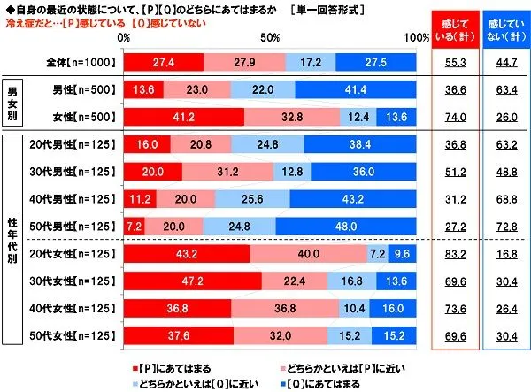 冷え症さんの半数以上が「冷え症だとポジティブな気持ちも冷やされる」と実感