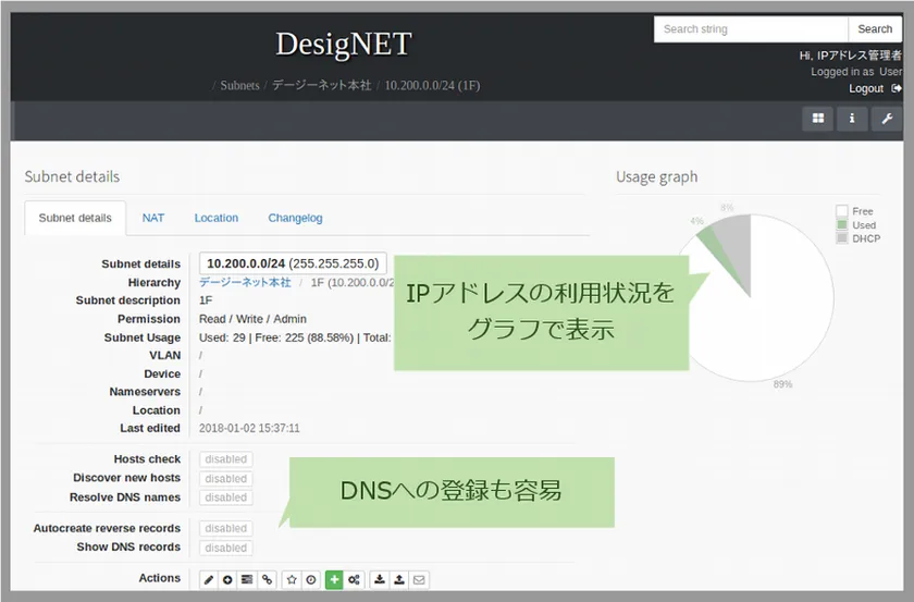 株式会社デージーネット(本社:愛知県名古屋市、代表取締役:恒川 裕康)は、2018年2月1日よりPowerDNSの商用サポートにIPアドレスの管理ツールを追加します。PowerDNSとIPアドレスの管理ソフトウェアphpIPAMを連携させることで、空いているIPアドレスが視覚的に分かり、そのままDNSへの登録も行うことができます。これにより、組織内のネットワーク管理業務を効率化することが可能です。
