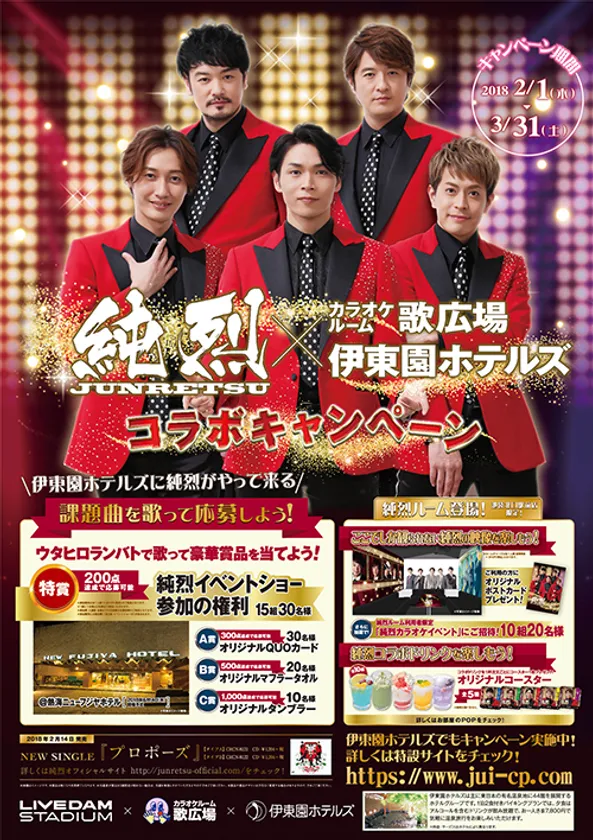 カラオケルーム歌広場×伊東園ホテルズ×純烈 コラボキャンペーン実施決定!!