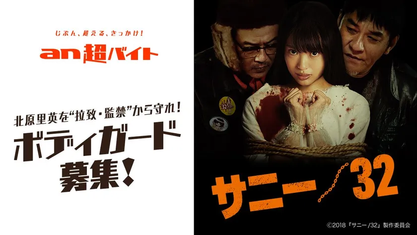 総合人材サービス、パーソルグループのパーソルキャリア株式会社(旧社名:インテリジェンス、本社:東京都千代田区、代表取締役社長:峯尾 太郎)が運営するアルバイト求人情報サービス「an」< https://weban.jp/ >は、思わず挑戦してみたくなるような「an超バイト」の新企画として、2018年2月17日(土)公開の映画『サニー/32』とコラボし、北原里英さんを“拉致・監禁”から守るボディガードを2名募集いたします!報酬は、日給5万円。さらに、北原里英さんサイン入りプレスシートをプレゼントいたします。