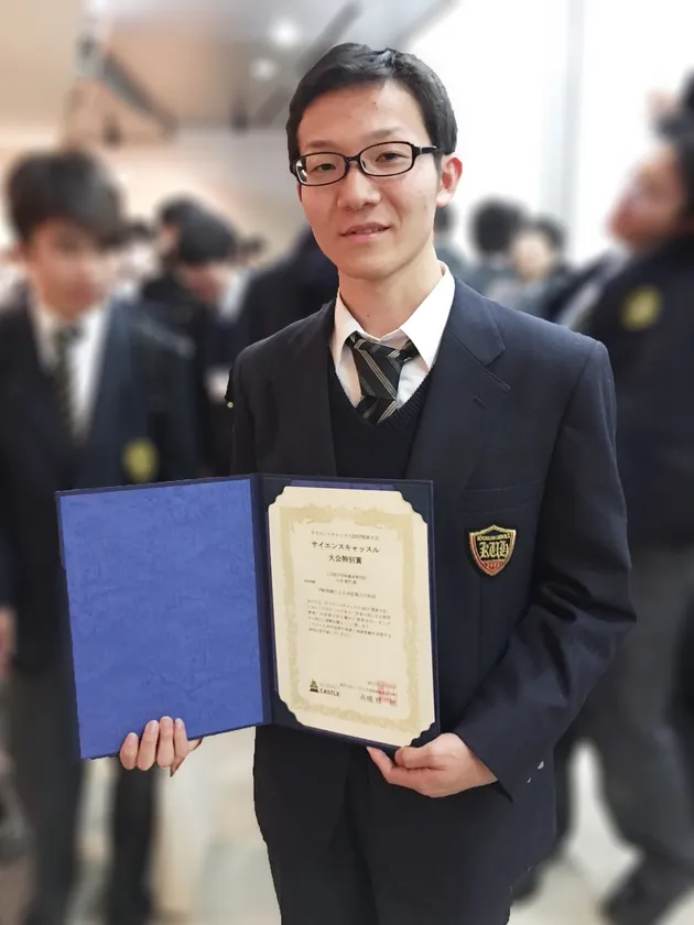 ●工学院大学附属高等学校2年・山本衛門さんが2017年12月23日に開催された「サイエンスキャッスル2017関東大会」に論文を提出。約200件の応募から12名の口頭発表に選出され、大会特別賞を受賞。