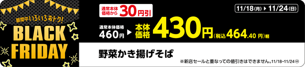 ●対象商品:カレーうどん、野菜かき揚げそば、塩バターコーンラーメン