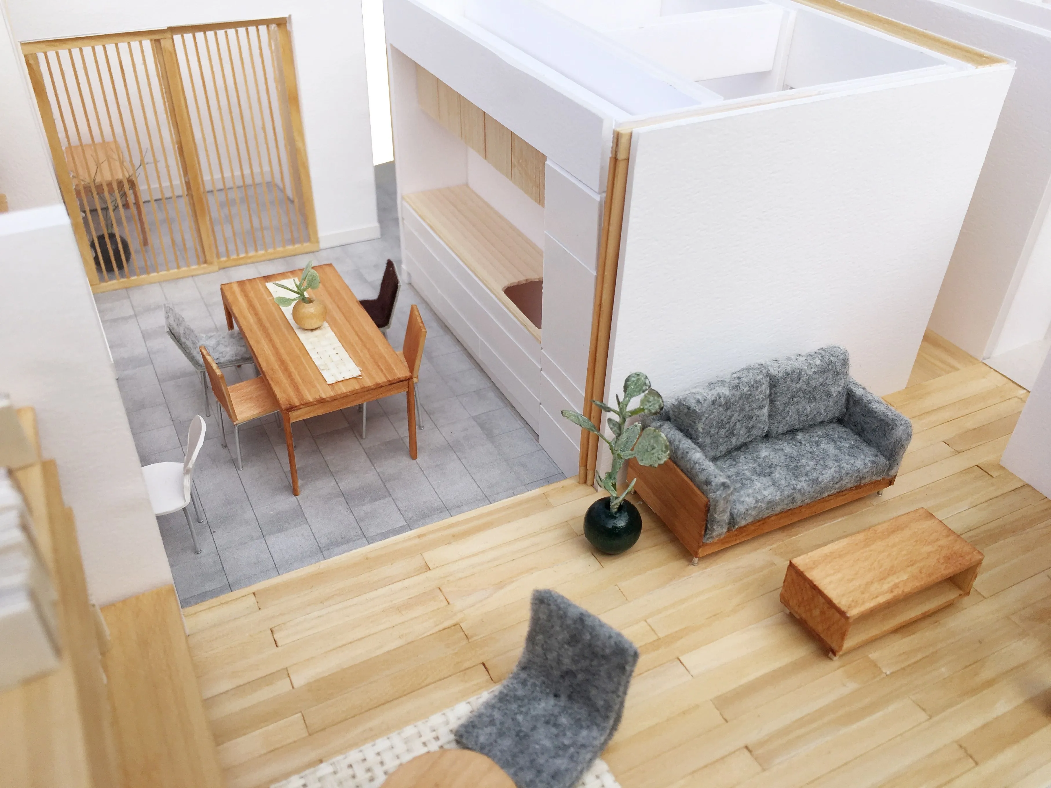 日常的なダイニングとしての使用はもちろん、土間で住戸外と緩やかにつながることで、人を招いてのアイディアブレストや創作活動も行えます。食事を楽しむことで仕事仲間との懇親を深めたり、料理をしながら子供の学習をサポートしたりできます。