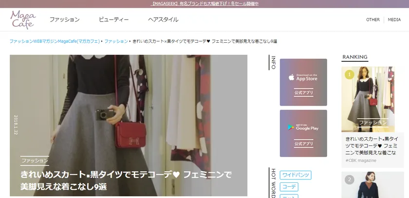 ファッション通販サイトを運営するマガシーク株式会社(本社:東京都千代田区、代表取締役社長:井上 直也、以下「マガシーク」)は、2018年1月24日(水)に、ファッションWEBマガジン「MagaCafe(マガカフェ、URL: https://magacafe.jp/ )」をリニューアルいたしました。