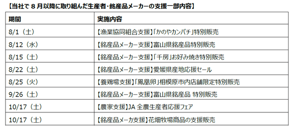 この取り組みをきっかけに新たな繋がりが生まれ、支援の輪が広がっております。引き続き日本各地の魅力ある商品の販売を通じ生産者を支援させていただくとともに、お客様においしい商品をお楽しみいただけるよう取り組んでまいります。