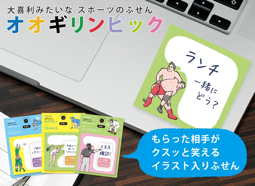 野球・相撲・体操など…12競技の“付箋”で大喜利に挑戦!? クスッと笑えるスポーツ付箋『オオギリンピック』2月下旬発売