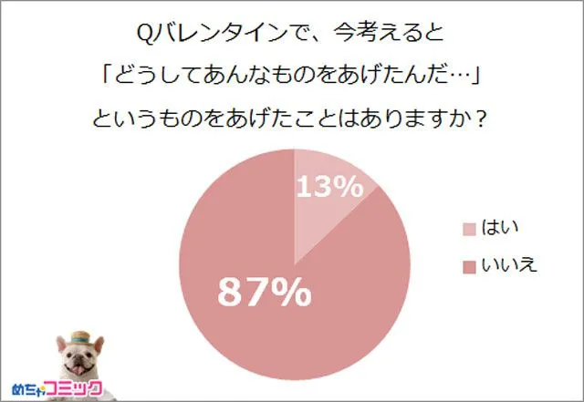 「めちゃコミック(めちゃコミ)」調査レポート 本命へのトンデモプレゼント!?あなたの恥ずかしい バレンタインエピソードを教えて! 10人に1人が渡したプレゼントに後悔していた!
