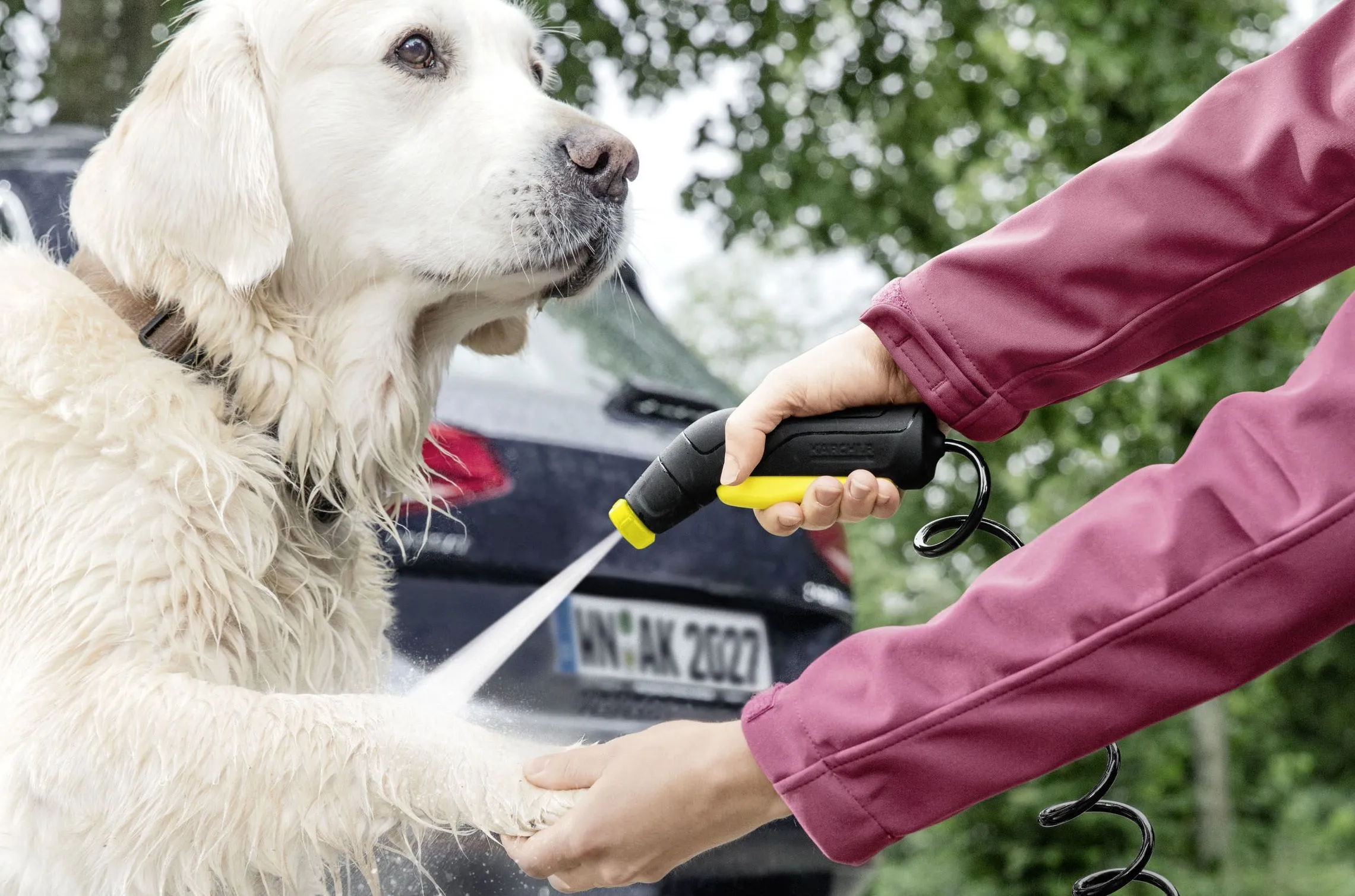 ケルヒャーの技術力を活かした扇形のフラットな水流で洗浄面に対し均等に水圧がかかるので、水道の約2倍の圧力でも効率的に洗浄できます。