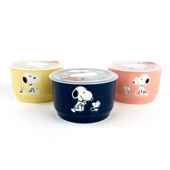 直径10cmほどの3色セット。蓋がきっちり閉まるので副菜などを冷蔵庫保存するときにとっても便利。しかも電子レンジ対応なんです!