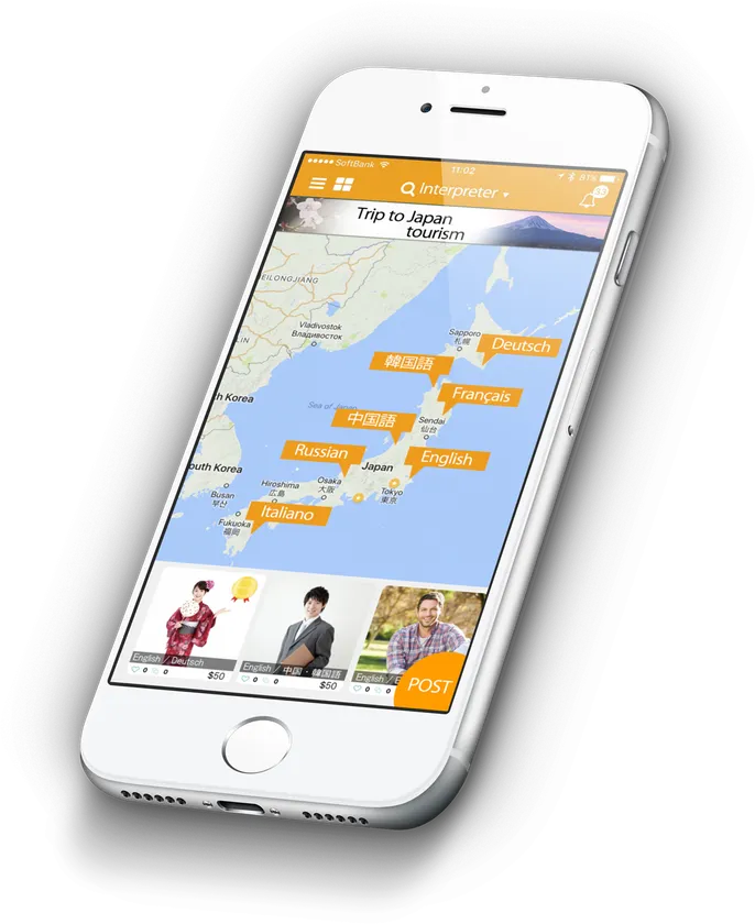 旅行者の方も、ツアーが紹介してくれる人材を受け身で、受け入れることになりましたが、当該アプリを利用することで、「この人が良い!」というご自身の意思で、通訳者を決定することが可能です。また、個人旅行者や国内の通訳を必要としている方にとっては、「どこから探せばいいのか?」という状況でしたが、当該アプリを利用することで、いつでも・どこでも・必要な時に探して、依頼することが最大のメリットとなります。