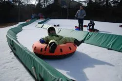 大きなタイヤチューブの形をしたソリで、中央にあるくぼみに腰を下ろして雪面を滑り降りるアトラクションです。クルクル回り、従来のソリ遊びでは味わえないスリルが楽しめます。