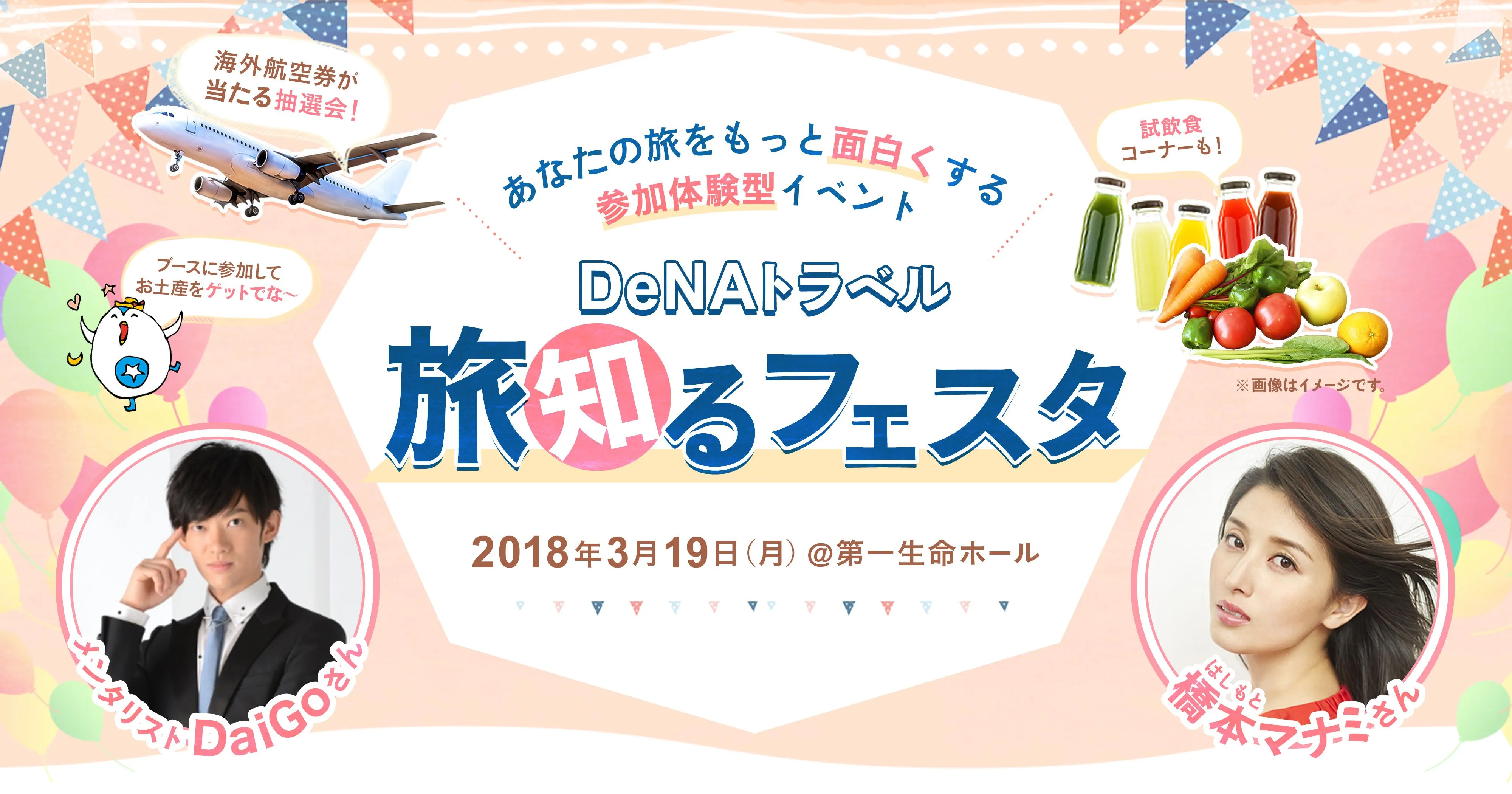 DeNAトラベル、メンタリストDaiGoと 橋本マナミをゲストに迎えた “あなたの旅をもっと面白くする”参加体験型イベント 「DeNAトラベル 旅知るフェスタ」を 3月19日(月)に開催決定! 本日から参加申込の受付を開始!