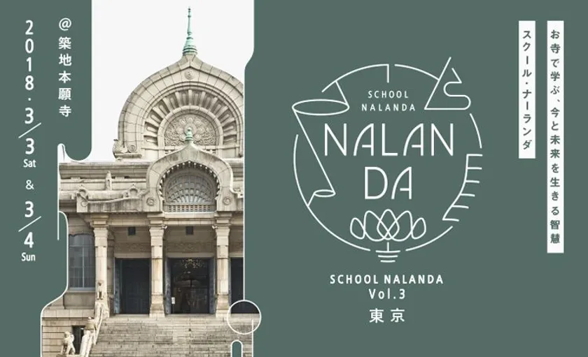 有限会社エピファニーワークスが浄土真宗本願寺派子ども・若者ご縁づくり推進室と連携してプロデュースする、若い世代のためのクロスジャンルな学びの場「スクール・ナーランダ」を、2018年3月3日(土)・4日(日)に東京・築地本願寺にて開催します。