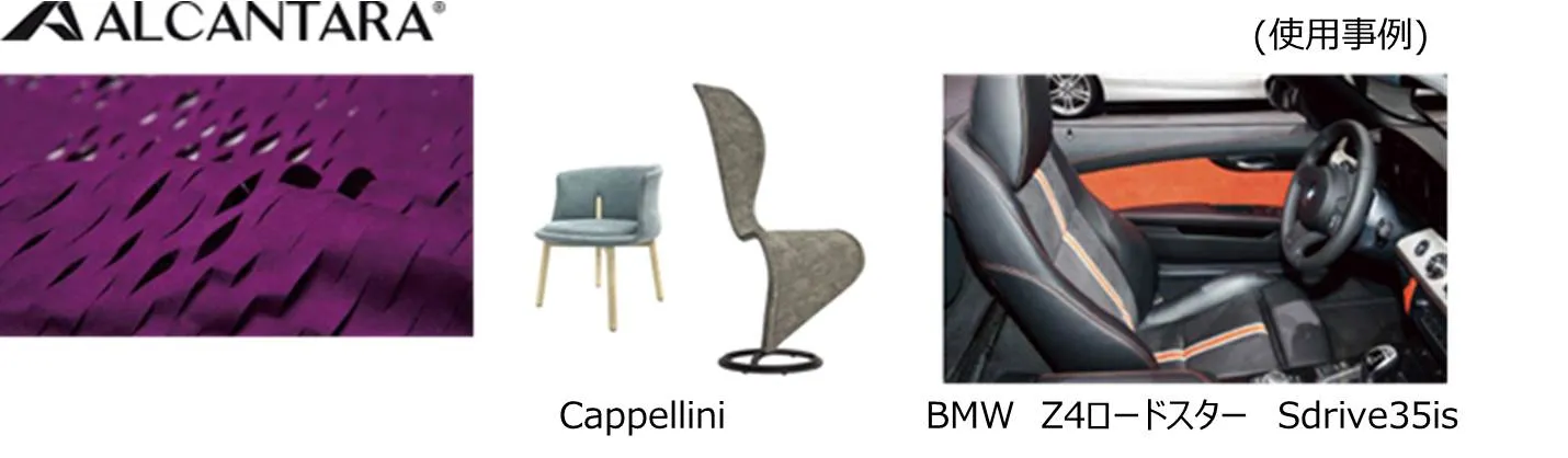 アルカンターラ(R)は、エレガントで繊細な美しさと優れた機能性を持ち合わせた、メイド・イン・イタリアの先進的なマテリアルです。世界が認めるユニークな特許技術を持つアルカンターラ(R)は、長年にわたりファッション、インテリア、高級自動車などグローバルをリードする多くのブランド企業に採用されています。また、アルカンターラを製造するアルカンターラ社は、企業のサステナビリティを理念に掲げ、2009年に「カーボン・ニュートラル」の認証を取得しています。