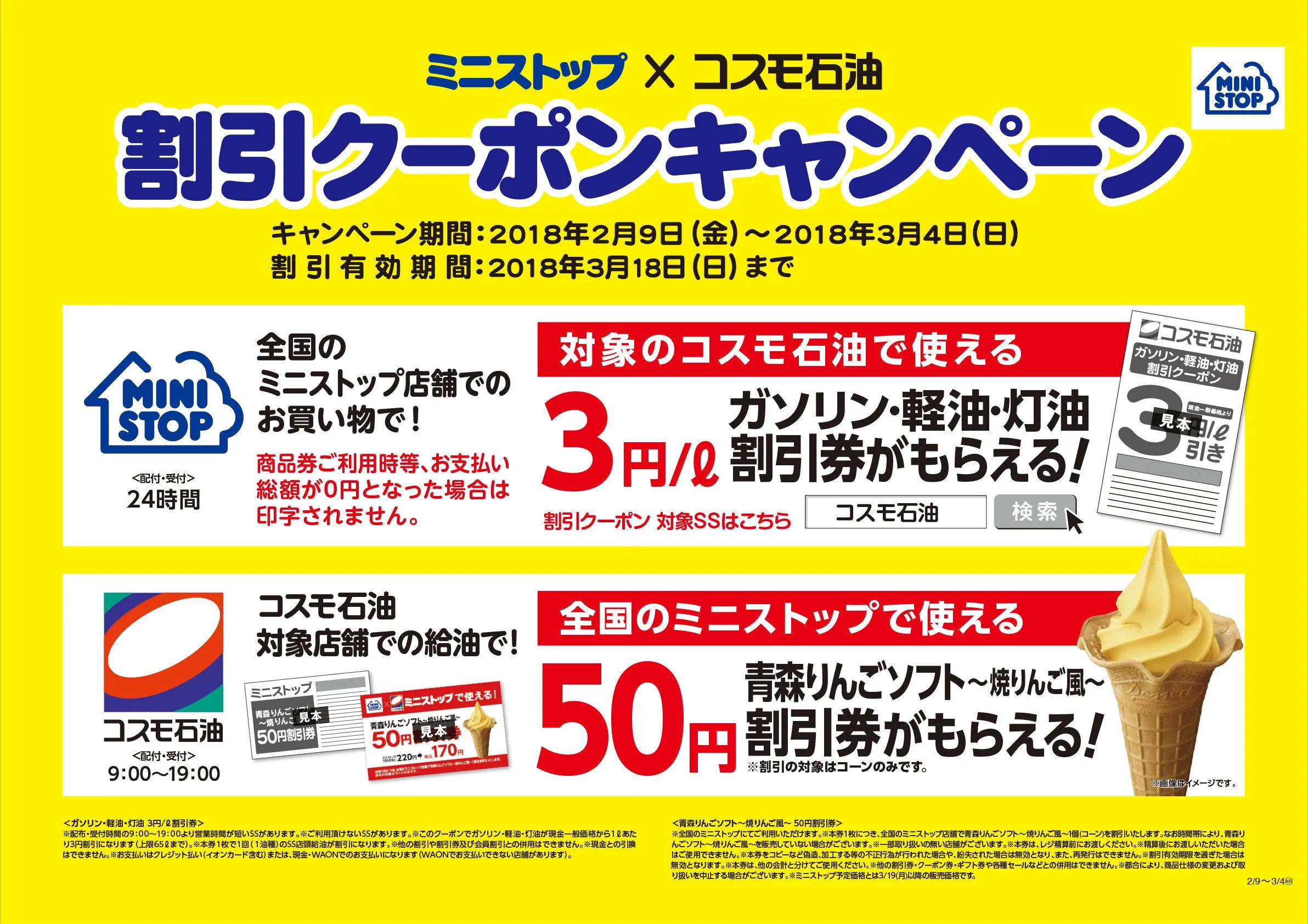 <名称> ミニストップ×コスモ石油割引クーポンキャンペーン