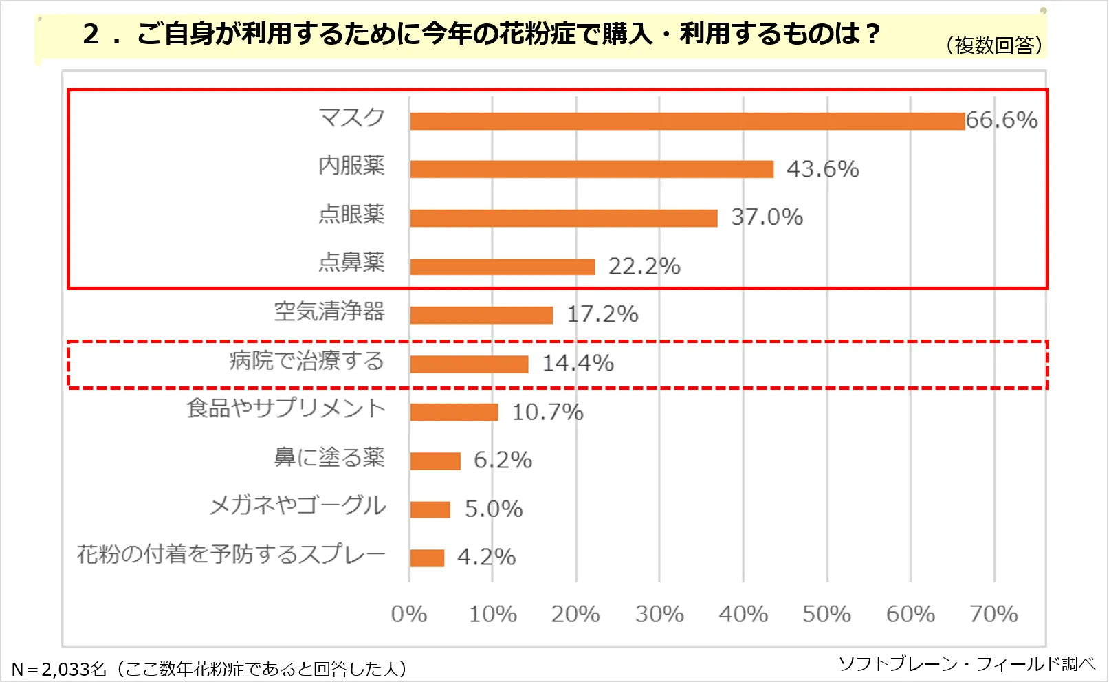 次に、今年の花粉症対策に購入・利用するものについて調査した。