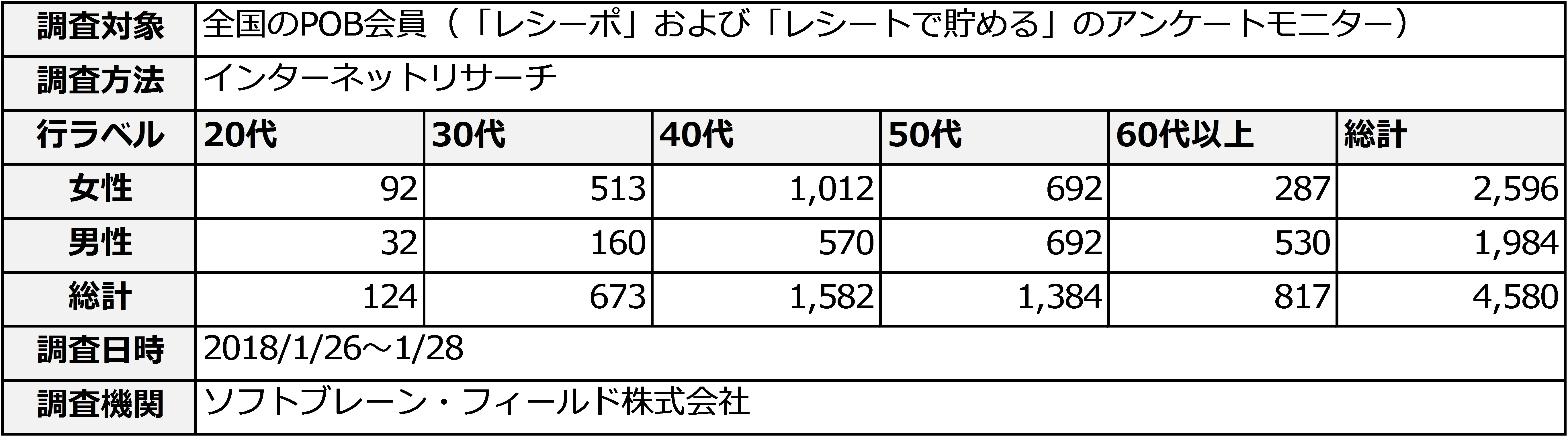 先月16日に、日本気象協会が発表した2018年の花粉飛散予測によると、前年と比較して、東北、関東甲信、四国地方では前シーズンの1.5倍以上となり、今年の花粉飛散量は多めであると予測する地域が目立つようです。本格的な花粉症シーズンを前に、フィールド・クラウドソーシング事業を展開するソフトブレーン・フィールド株式会社(本社:東京都港区、代表取締役社長:木名瀬博)は、「レシーポ」(https://receipo.com/)および、株式会社クレディセゾンと共同事業で運営する「レシートで貯める」(https://aqfpob.com/)の、「Point of Buy(R)購買理由データ」(以下POB会員)アンケートモニター(N=4,580名男女)を対象に、「花粉症に関する調査」を2018年1月26日(金)~1月28日(日)にかけて実施しました。その結果をご報告いたします。(調査概要は資料4Pに記載)