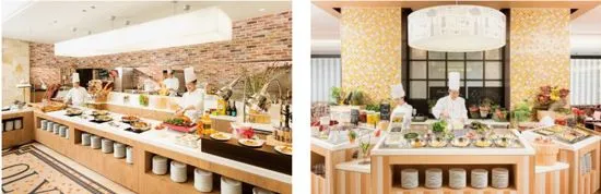 「オリンピア」は当ホテルのトレードマーク的な存在でありコマンドゥール・シェフ塚本を筆頭に和・洋・中・デザートそれぞれのシェフが織りなすライブ感あふれるレストラン、そして関西最大級のホテルバイキングとして半世紀にわたりそのスタイルを貫いています。2015年3月にはさらに“出来たて”にこだわり店舗の改装を実施。今春で改装リニューアル3周年を迎えます。