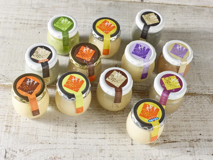 ラインアップは10種類の無添加のプリンと2種類の砂糖不使用の計12種類。賞味期限も14日以上で神戸のお手土産としてもおすすめです。