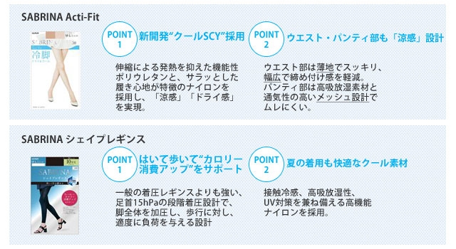 日本の平均気温はこの100年の間で年間平均気温が約1.2℃上昇しており、熱帯夜や猛暑日が増加しています。そこで、猛暑に向けた夏にぴったりなクール素材を使用したストッキングとレギンスのアイテムを新発売。接触冷感やUV対策、高吸放湿性機能を兼ね備えた夏の着用も快適なサマー機能商品です。