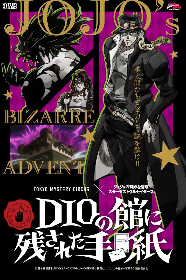 ジョジョコラボ第3弾ッ!開催決定! 東京ミステリーサーカス ×ジョジョの奇妙な冒険 スターダストクルセイダース 今度は東京ミステリーサーカスだッ! MYSTERY MAIL BOX・コラボグッズ・コラボフード 「ジョジョの奇妙な館からの脱出」 追加&リピーター公演発表!