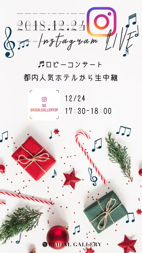 株式会社BG(本社:東京都新宿区、取締役社長:一色 徳宣)が運営する、花嫁のための結婚式情報メディア『BG』は、公式Instagramアカウントにて、2018年12月24日(月・祝)に、都内人気ホテルにて開催されるクリスマスイベントをライブ配信いたします。