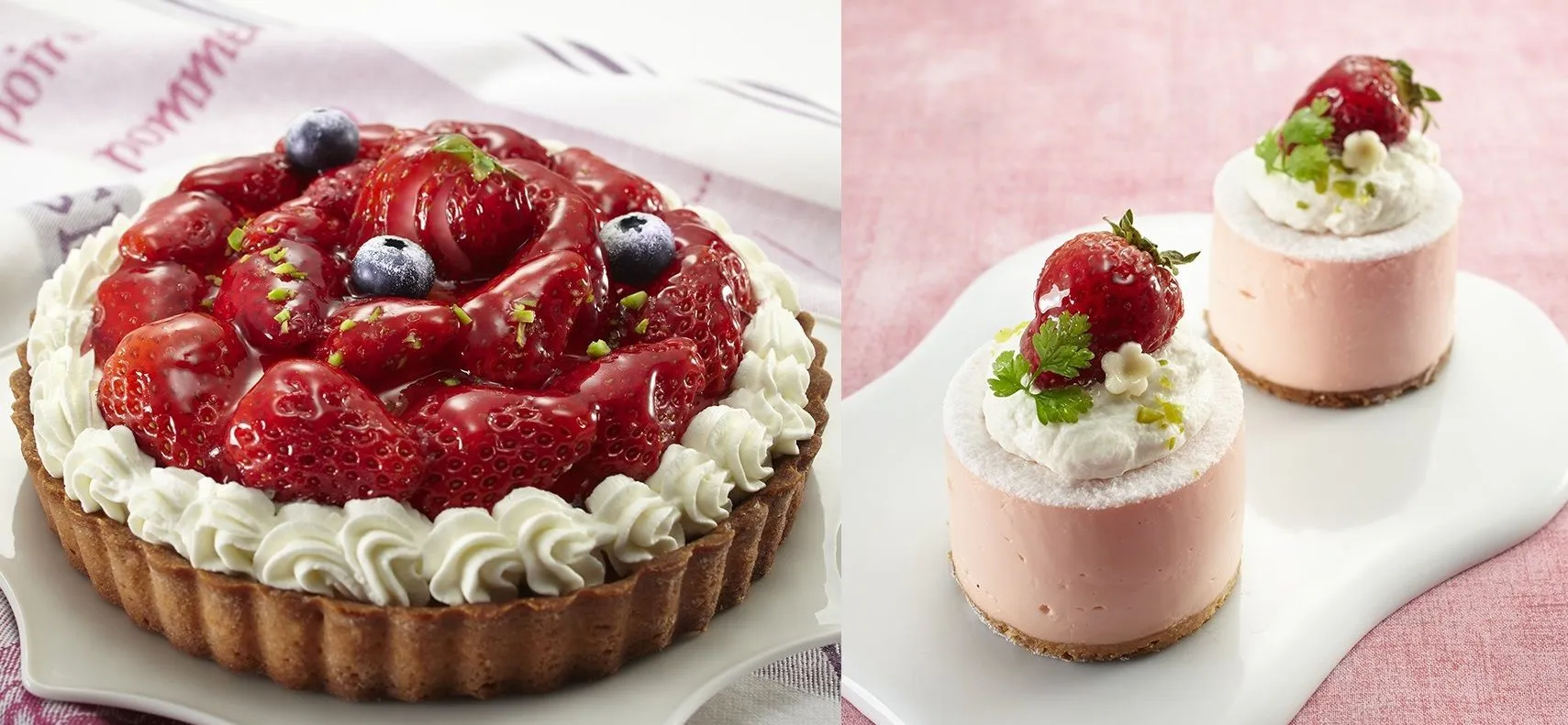 「紅ほっぺのいちごタルト」(左)と「フルール ド フレーズ」(右)