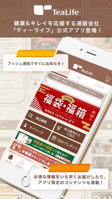 「いつまでも健康・いつまでもキレイ」をコンセプトに、健康茶、健康食品、化粧品等を通信販売しているティーライフ株式会社(本社:静岡県島田市、代表取締役社長:植田 伸司、東証一部:証券コード3172、以下「ティーライフ」)は、クラウド型アプリ運営プラットフォーム「Yappli(ヤプリ)」を運営する株式会社ヤプリ(本社:東京都港区、代表取締役:庵原 保文)の開発支援により、最新情報のお知らせやアプリ限定コンテンツなどを提供するスマートフォンアプリ「ティーライフ公式アプリ」を2月13日(火)より無料配信を開始いたしました。