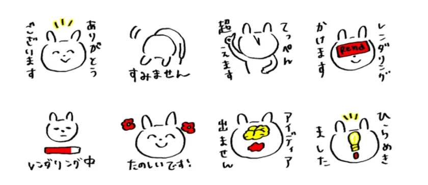 「CGプロダクション デザイナースタンプ」では、CG制作会社で日々頑張るデザイナーさん達の気持ちを、ゆるいうさぎが代弁しています。「レンダリングかけます」「収集しました」等々、当社内で飛び交っている用語を多数入れ込み、「あるある!」と頷いていただける内容のLINEスタンプに仕上げています。