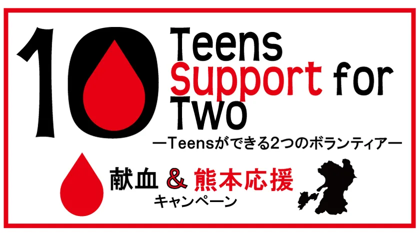 日本赤十字社関東甲信越ブロック血液センターは、2018年1月1日(月・祝)から3月31日(土)の間、“Teens(10代)”の方々に、「献血」と「熊本応援」を掛け合わせたボランティアキャンペーン『Teens Support for Two!』を実施しています。