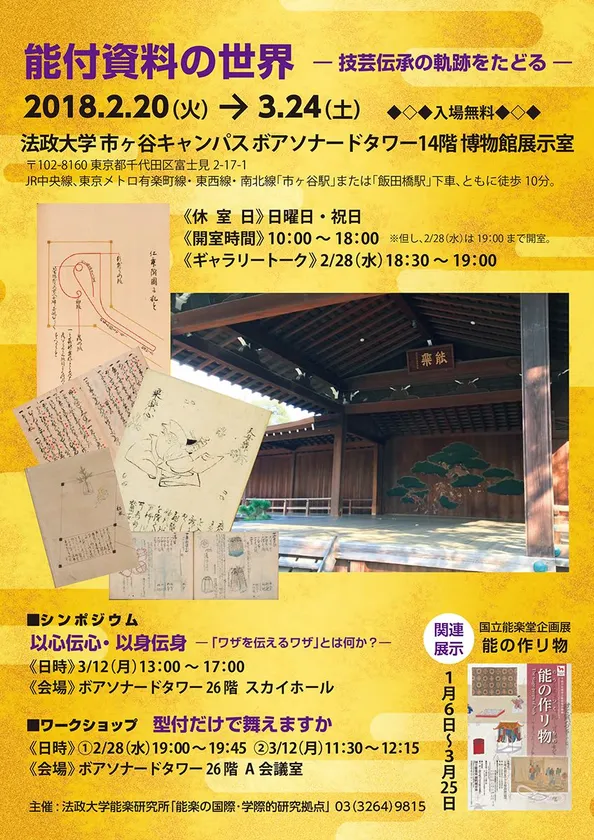 法政大学能楽研究所「能楽の国際・学際的研究拠点」主催展示 「能付資料の世界-技芸伝承の軌跡をたどる-」 身体芸術の技芸伝承を考えるシンポジウム・ワークショップも開催