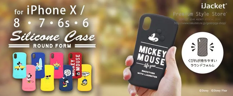 iPhone X/8/7/6s/6用の ディズニーキャラクター シリコンケースです。滑らかな手触りで、くびれが持ちやすいラウンドフォルム落下、振動に準拠した試験(MIL-STD-810G)をクリアした、耐衝撃&耐振動設計。お手入れに最適なクリーニングクロス付きです。