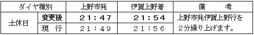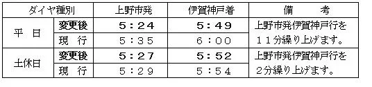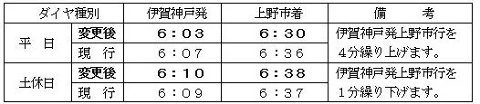 ・上野市~伊賀神戸間(上り) 平日・土休日とも変更なし