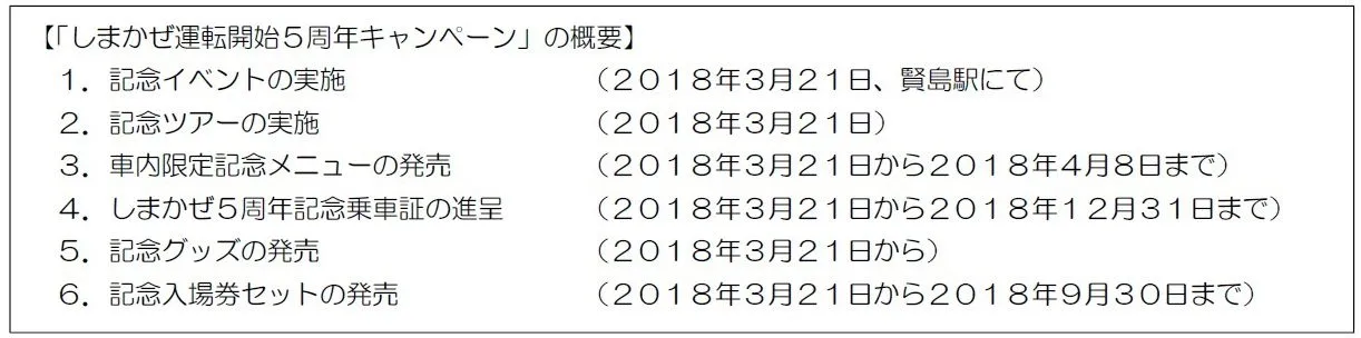 【しまかぜ運転開始5周年キャンペーンの概要】