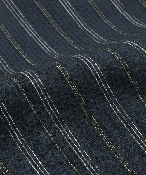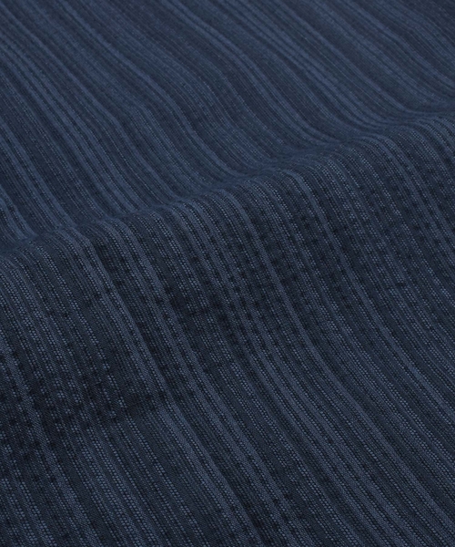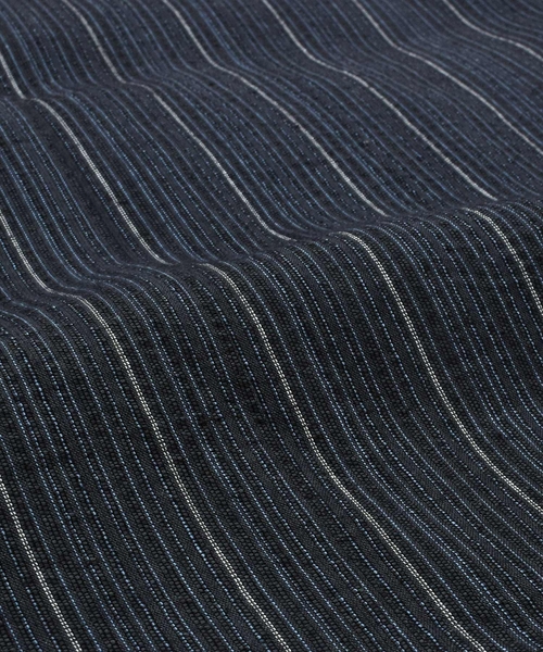 黒みの紺色地に黒い縞、間に細かな白い縞。一見2色に見えますが、実は紺白黒の3色。繊細な奥行きを感じさせます。