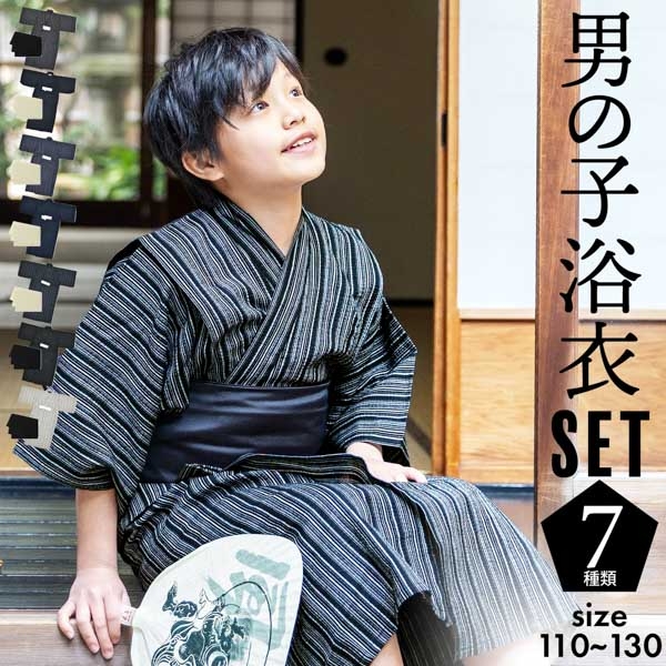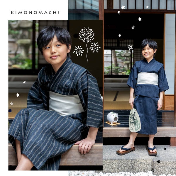 京都発の和装ブランドKIMONOMACHI(有限会社京都きもの町、京都府京都市、代表取締役:久保村一文)では、和装通販ショップ「京都きもの町」にて大人気のオリジナル男の子浴衣に、新たに黒白縞、黒藍縞、紺白縞、紺縞 、紺地白黒縞、多色混変わり縞、生成りグレー縞の7柄が登場した。同社はメディア衣装提携実績が豊富なブランド。京都きもの町オンラインストアにて購入が可能。