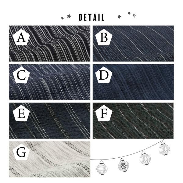 色柄は、大人用の浴衣の中でも特に人気のものが選ばれています。紺や黒などベーシックな色を基調とした縞柄で、年齢問わず着られるデザイン。大人っぽいものがお好みのお子様や、習い事用にスッキリとした浴衣をお探しの方に最適です。大人用と同生地ですので、家族でリンクコーデも楽しめます。