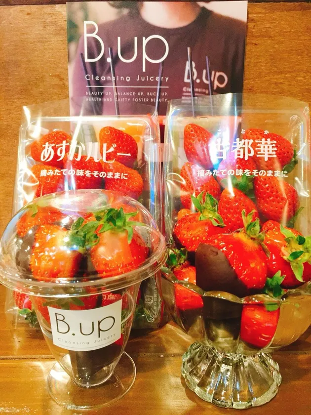 大阪で注目のエリア、おしゃれスポット京町堀、靭公園近くにあるコールドプレスジュース専門店『B.up Cleansing Juicery(ビーアップクレンジングジューサリー)』が奈良県を代表する苺品種「あすかルビー」と「古都華」を、厳選したフェアトレードで販売されているKAOKA社のオーガニックチョコレートでやさしくコーティングした『ROUGE-BRUN(ルージュ-ブラン)』を2018年2月22日(木)より毎日数量限定で店頭販売開始いたします。
