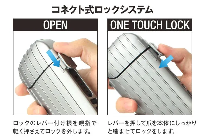 スーツケースを思わせるスタイリッシュなデザインで、極力無駄を削ぎ落としたスリム&スマートルックス。ストラップホールも付いており、操作性についても抜かりありません。