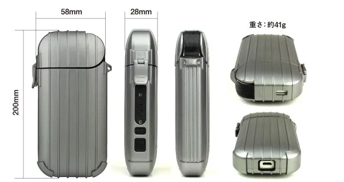ケースを装着したままでの全てのボタン操作やバッテリーゲージの確認、充電を行うことができる設計です。重さは約41gと軽量、IQOS本体のサイズ感を損なわない大きさでかさばることはありません。もちろん従来型のiQOS 2.4から新型のIQOS 2.4 Plus両方に対応しています。