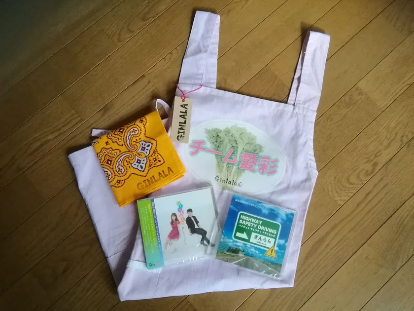 (1)GINLALA手作りエプロン(ピンク)・オリジナルバンダナ・CD2枚セット