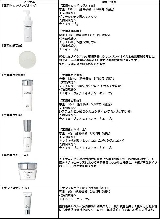 【薬用美白スキンケアシリーズ『シロエホワイト』商品ラインナップ】